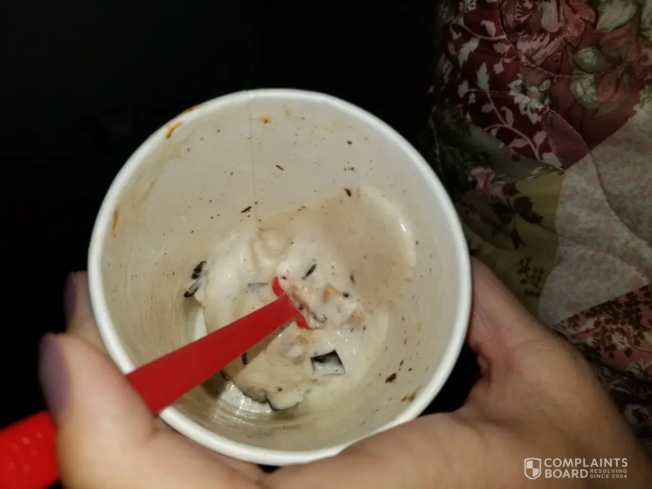 Another issue was when I order TWO large blizzards, that's a lot of money, when i order something i expect it to be what i ordered, mine were not, at first glance i believed them to be, but found out i was very wrong once home. I commented to the cashier once she put them in the try that she didn't flip them, she laughed, flipped ONE and then pushed my things my way.