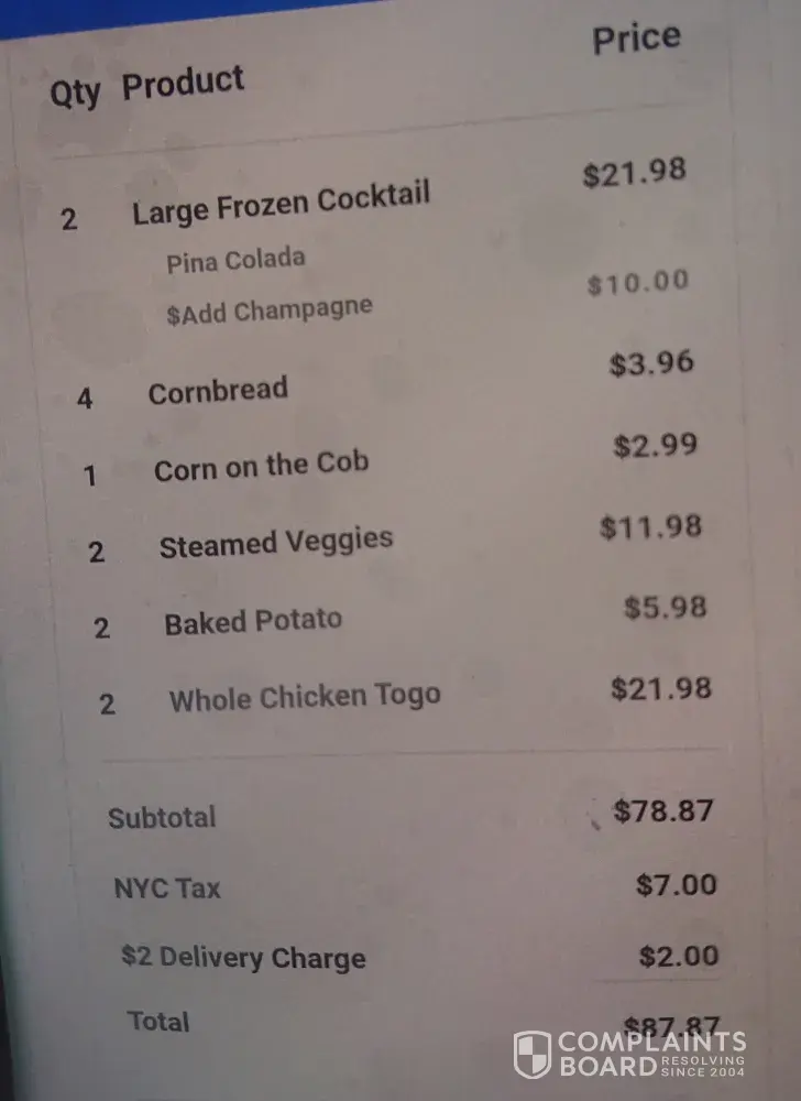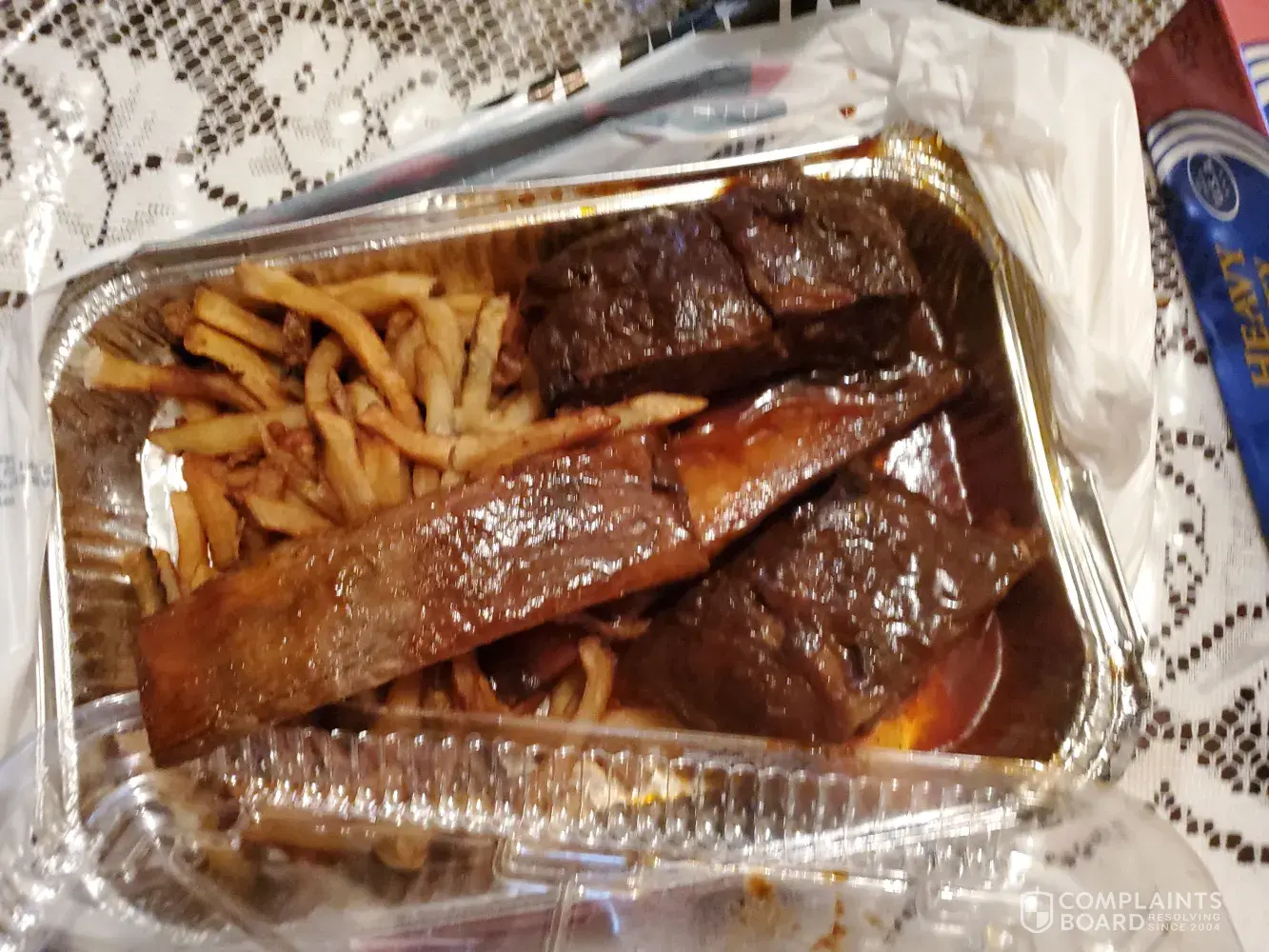 I had a delivery for beef bbq ribs along with other orders. I received 2 burt ribs and bones. That's a RIP off, people are dying and sick. This is what your establishment do. I decided to eat the cornbread and it was raw in the middle Friday. Just because we are not in the establishment, does not give you the right to give just anything, for a sake of a sale. I'm wondering if its news worthy so people can see what's being done. The location is washington heights, manhattan new york.