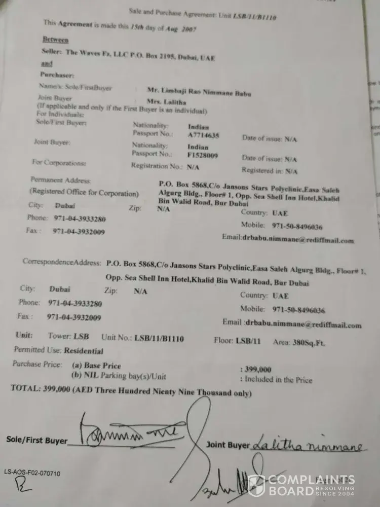 We have been waiting for years now & inspite of reminders sent, you guys are least bothered to figure out a positive solution for the refund, for our hard earned money. Sale & Purchase agreement LSB/11/B1110