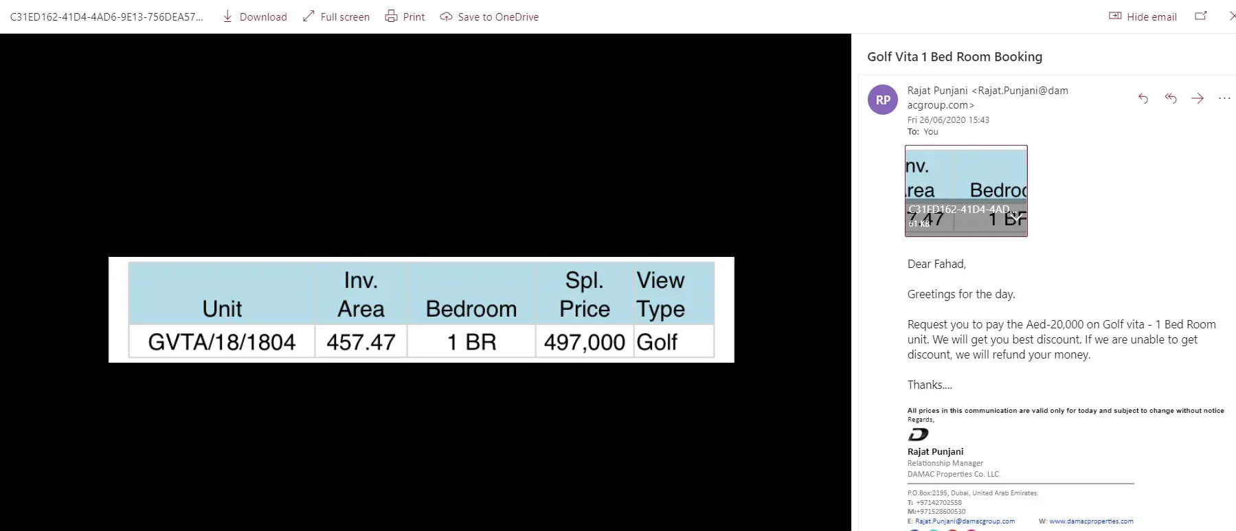 My compliant is that this was clearly a misrepresentation of facts by Damac Properties. We were told something else and given something else. And no matter how many emails or calls we made, there was no response.