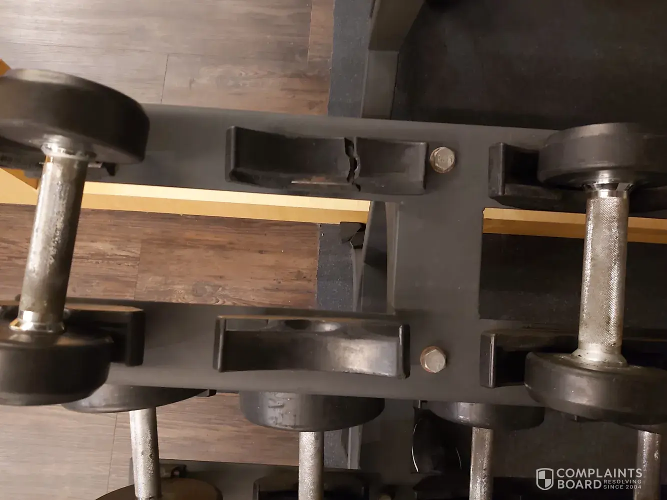 The plates are disfigured, the dumbell stand's been worn out with parts falling, and there's been no addition to the gym in the last three years.