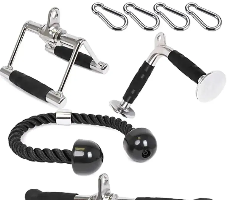 The gym is missing basic types of equipment like a barbell set and cable attachments, including V Handle, V Bar, Tricep Rope.