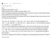 I have a complaint regarding a parking fine I have received of a value of AED 400 from Dubai Police issued by the security guy in the building.