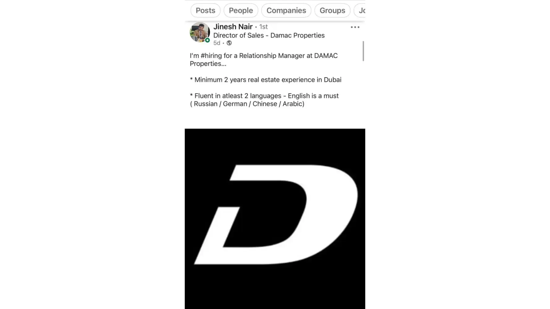 i had applied for a vacancy at Damac following the attached advertisement on linked-in published by the mentioned personal, i found it a little weird that a sales director is conducting interviews instead of Damac-HR which is usually the normal procedure, after attending to the interviewing on the following day, and answering questions based on my knowledge base, the interviewer "Jinesh Nair" stated that he haven't even reviewed my CV and that he is welling to hire people who were working previously with other developers even though my CV doesn't include for the same neither his advertisement.