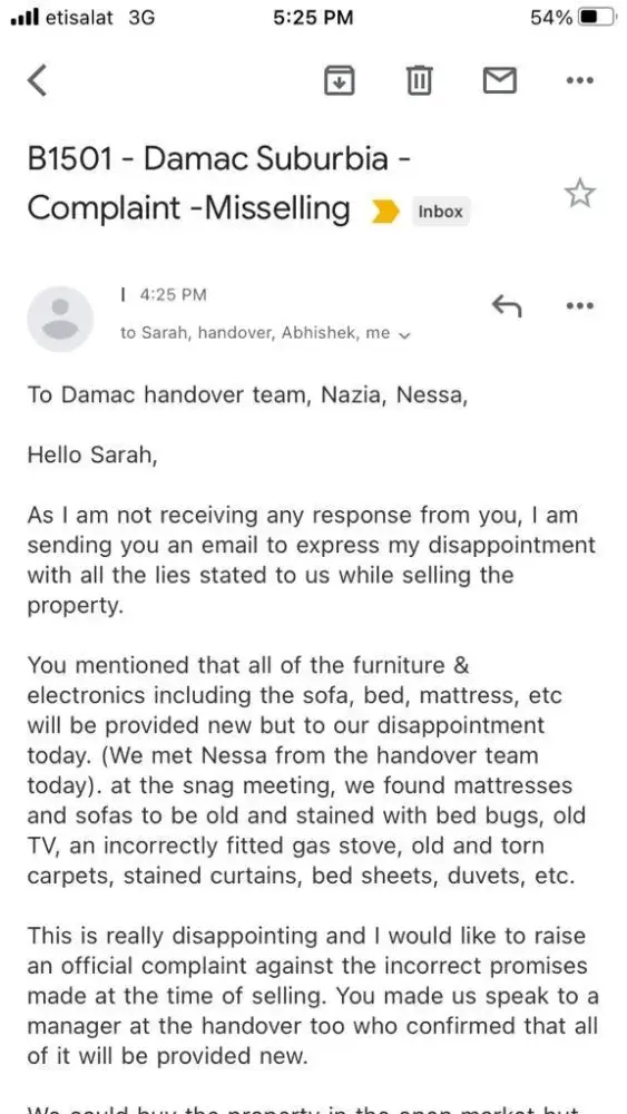 Apartment handover and cheating by damac - orb 401 - damac hills