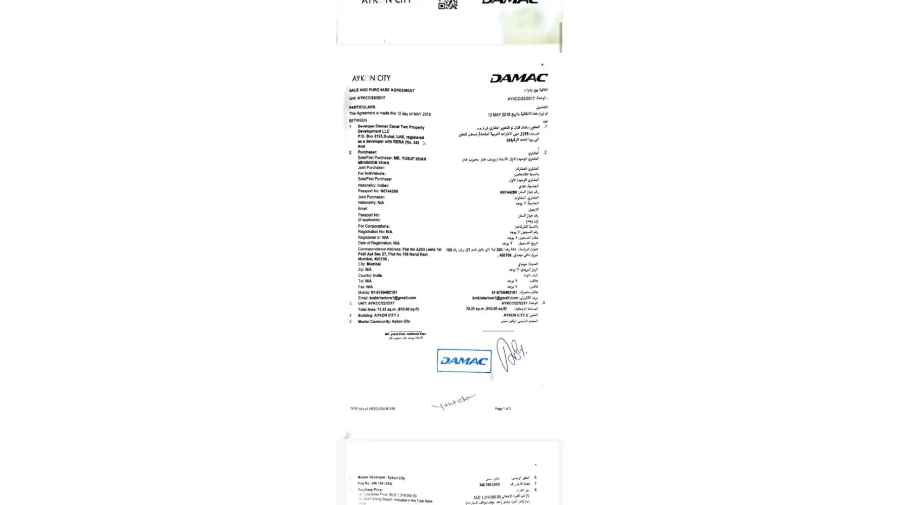 I was an existing client and I’ve trusted because he was representing Damac, and I had a previous good experience dealing with Damac. My trust in Damac as a company is gone after this incident.