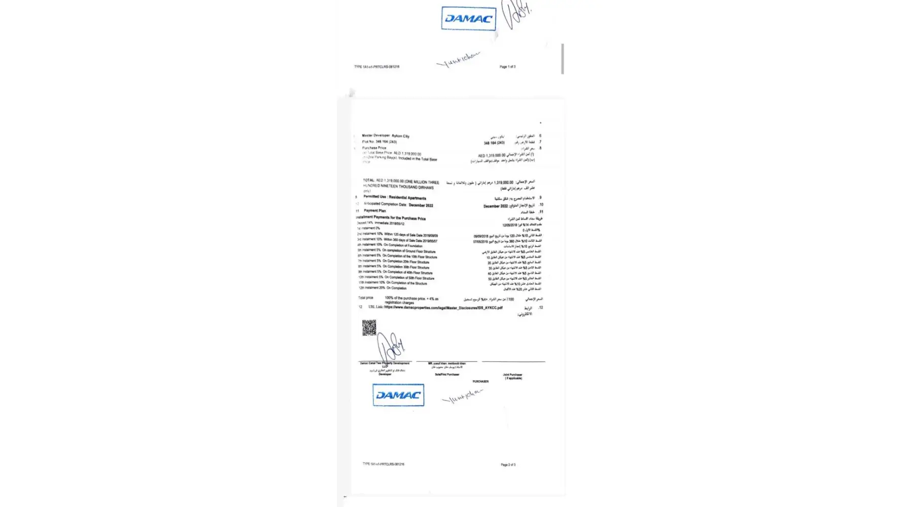 As a conclusion: Damac selling agent cheated on me with 273.000 AED and I do not want to pay 32% more than the correct price for this property. I cannot see any other option than reduce the price to the correct value of the flat (850,000) or keep the property and refund the money I already paid (722,956.72 AED).