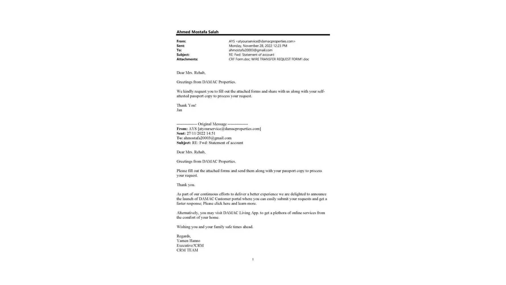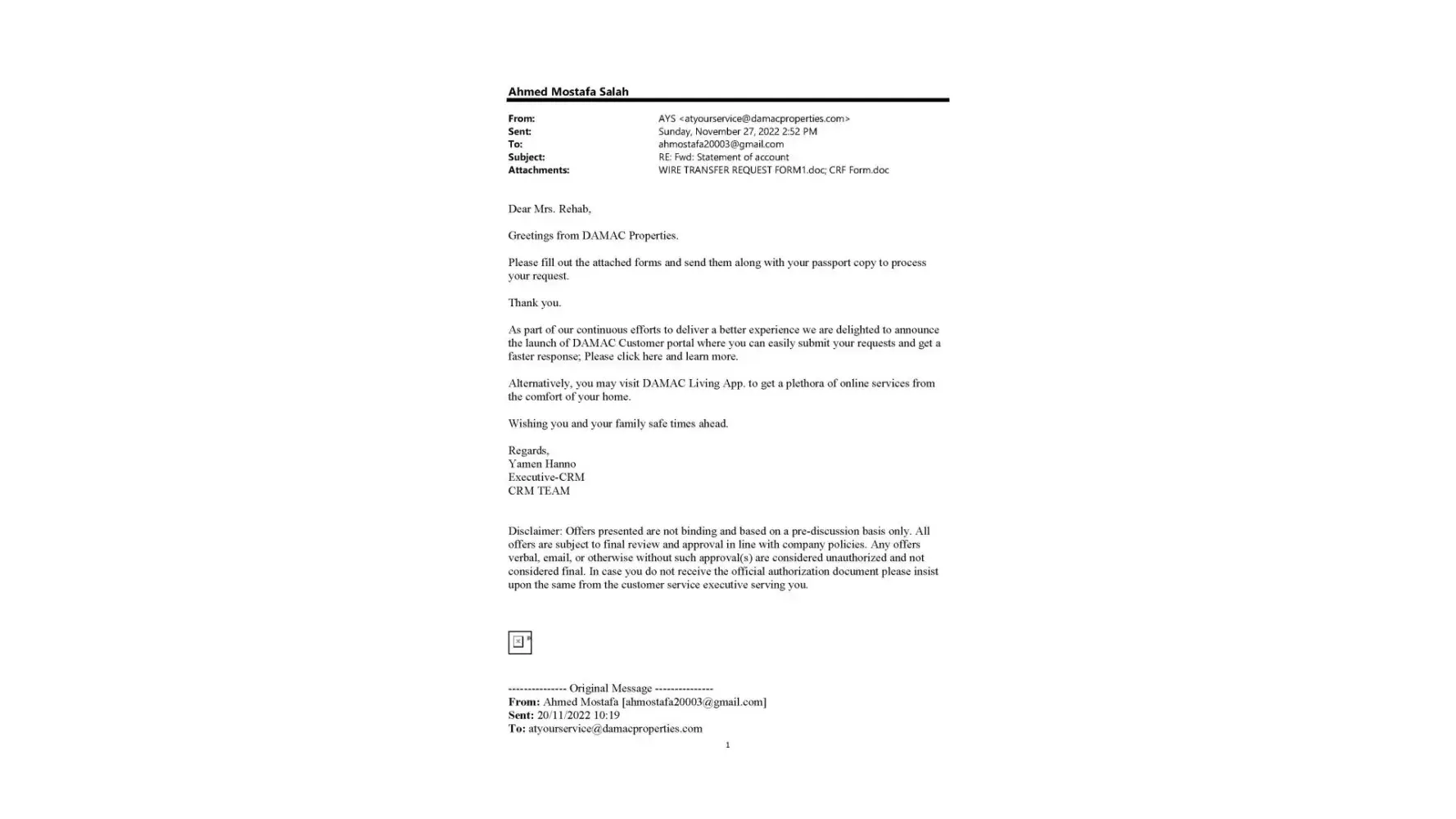 At the time of purchasing the property, the agents from Damac, Mr Vineet Gambhir and Wasym Ahmed, assured to me (in writing) that I will get 2% discount from the net price, that they will refund when I pay the second installment. I have paid 3 installments so far, and still haven't received anything. They are ghosting me. I raised this with Damac unsuccessfully, so you are my last chance before I raise an official complaint with Rera and the police.