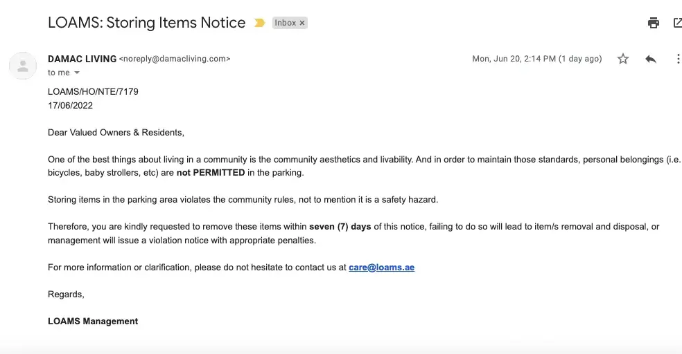 Damac Community Living has been issuing so many restrictions for Villa Owners. The list goes on and just recently they have issued baby stroller, bicycle and other should be removed from your own parking area. Seriously? Our own parking area? The property is not cheap and the villa you have created are too small and tight. No ample space to store even inside the house. Damac is worried about aesthetic instead of owners comfort? The biggest scammer hidden under real estate name of Damac where every move and changes are linked with fine. Thats how they make money. Build small villa's and start putting a fine for lack of spaces ad storage. Worst no facility like restaurant options in the community mall. Why don't you focus on the needs of the owners than those unnecessary things. Our parking is ours and we reserve the right to occupy it according to our needs. As long as it doesn't bother my neighbor or a hazard to anyone. Stop sucking our blood and build a community where owners will like it not hate it.