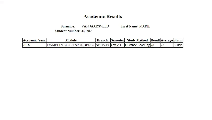 I have repeated call about the omitted internal exam mark for one of my sons subjects as he needed the statement of results for his external exam registration to write second semester exams. It is over a month since the results were released and since I raised this issue. It is totally unaccepted. It is not the first time that damelin has failed with their connunication.