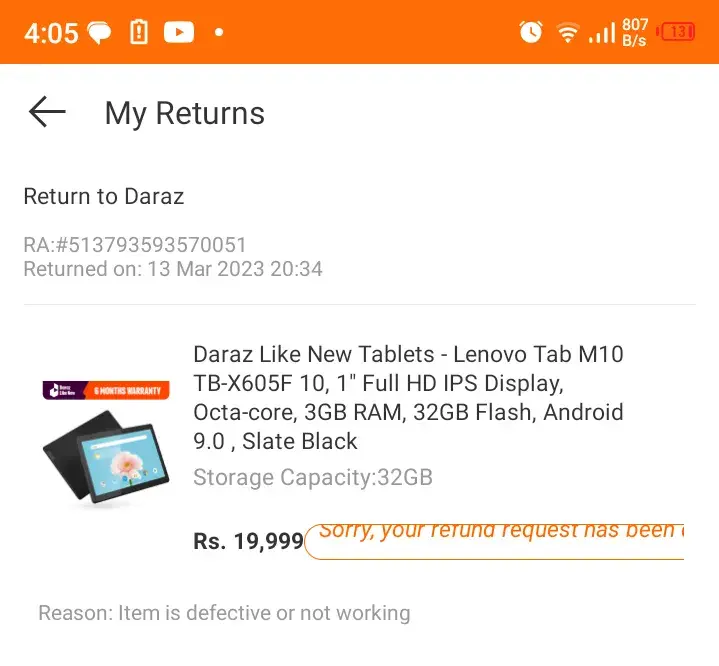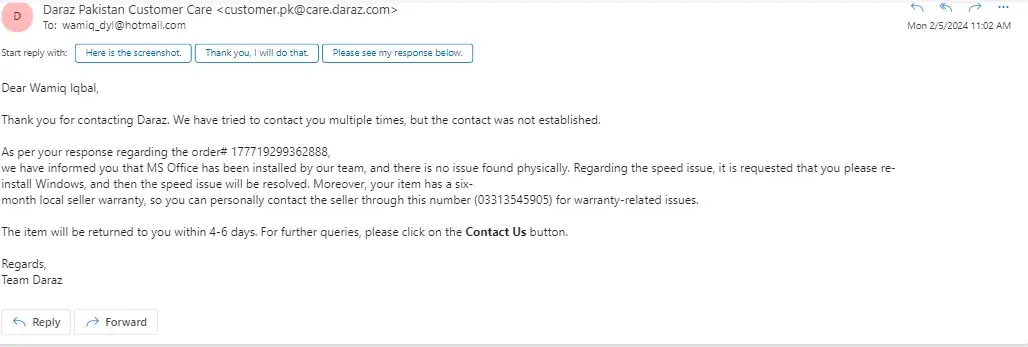 Daraz,pk Refused to claim it.