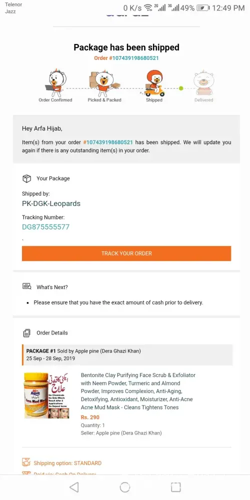 Ab mera order gakkhr aya howa hy but tell me main 40 mins distance kr k agr city ja skti hoti to ja kr hud buy na kr leti order q krti plz do something