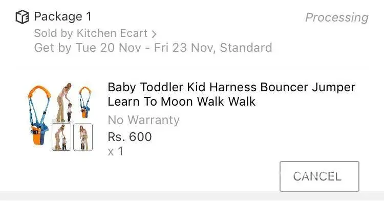 I have ordered "Baby Toddler Kid Harness Bouncer Jumper Learn To Moon Walk Walk" against product i.d #[protected]. But I got delivered the wrong one it's not the one I ordered. The product which I received is different in style and design.
