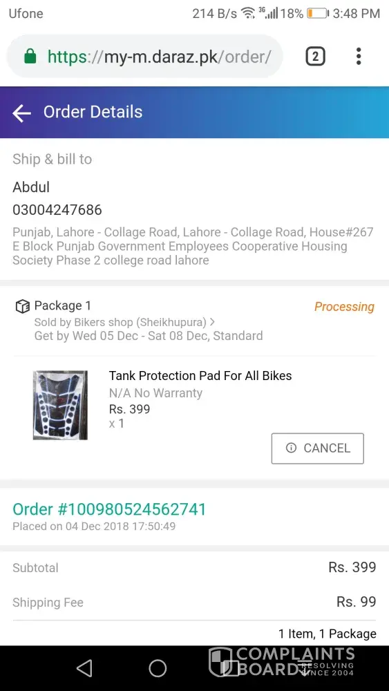 I am really really very disappointed with your shipping daraz.pk