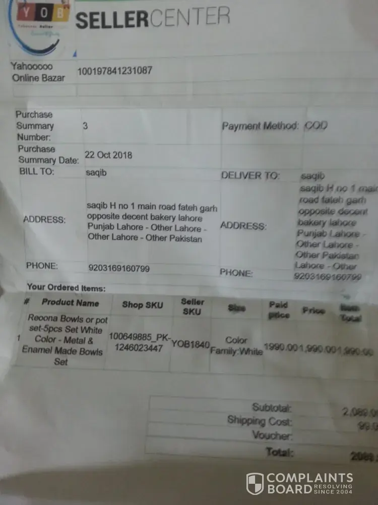 So, I ordered a set of 5 nonstick bowls of the company Reeona from Daraz.pk of about Pkr 2089/- and when I receivedmy order, I opened the package and saw that the bowls were damaged. The floral designs were losing their colour and the design was all damaged. It had awful black spots on the bowls and all were really not so able to use. Also there were numerous small and big scratches on the bowls as well. These bowls look so bad and awful that they can't even be used for pets. I'mreally disappointed because I'm experiencing such kind of foolishness from Daraz.pk again for the third time. I mean what do you guys work for? We pay you the amount you ask and inreturn you send us damaged products or sometimes even not the products we order. This is really disappointing. The amount is not less too. It's a big amount. I paid cash along with the delivery charges and what I got is damaged bowls? I waited for the delivery for about 5 days for these awful and damaged bowls. Wow. And yes. This is the last time I'm ordering anything from Daraz. You guys ALWAYS disappoint us. This is so unjust of you.
