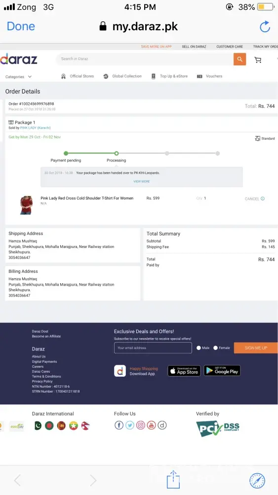 then i go daraz office my self and picked up my stuff and paid too