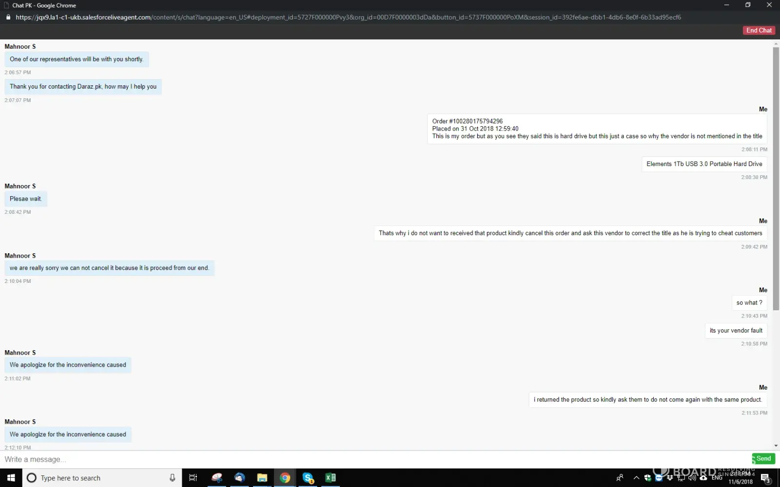 I ordered 6 products through daraz.pk on 11 November 2018 and entered my voucher code to pay for the products. The following day, my products had arrived and I was asked to pay with cash for the products I ordered despite using my voucher. My final payment did not exceed the voucher limit. I did not accept the products and requested them to be returned.