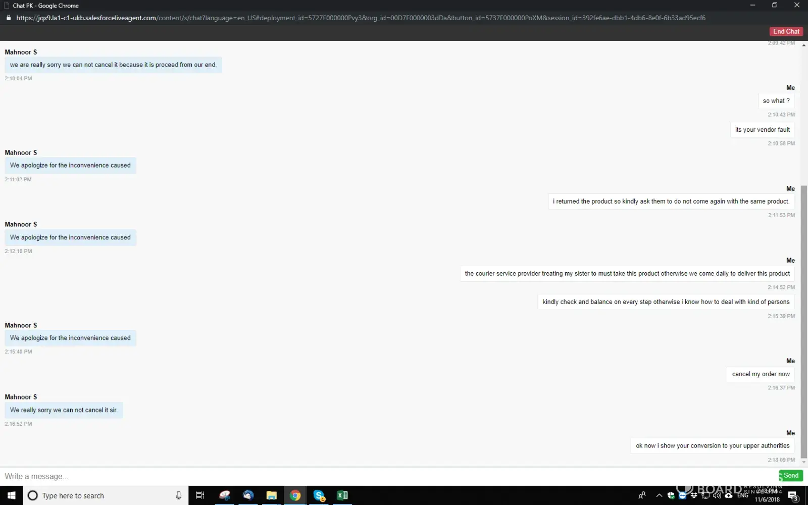 When I talked to online chats section so they said we can do nothing and suddenly they stop the chat and left the room.