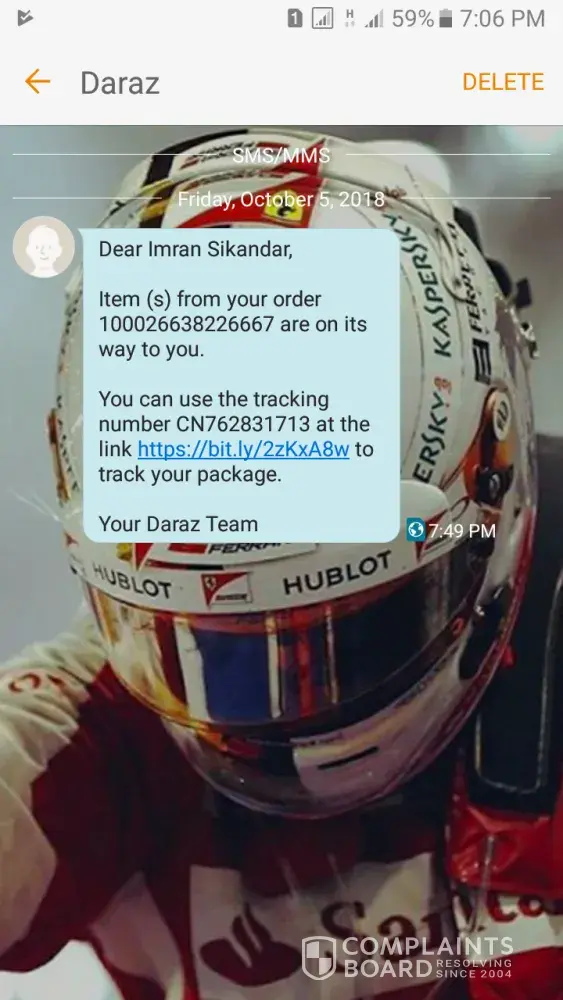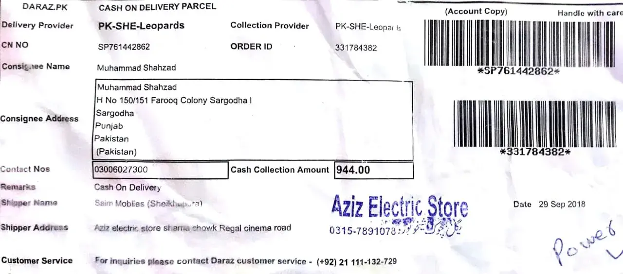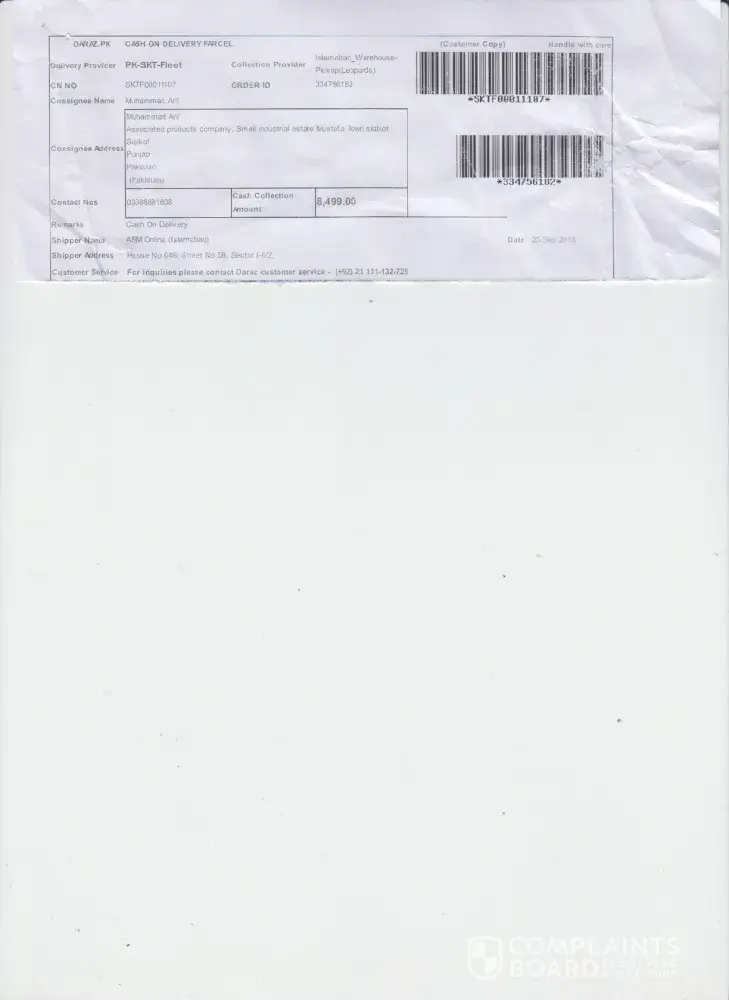 Now i have received multiple msgs from Daraz and Leopards Courier that my order hs been arrived on 12th Oct and that it has been delivered within 6 hours. its been 3 days since then order not arrived.