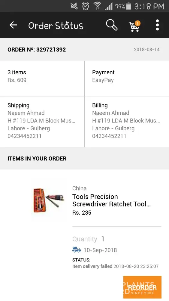 I ordered three items on Daraz.Pk online