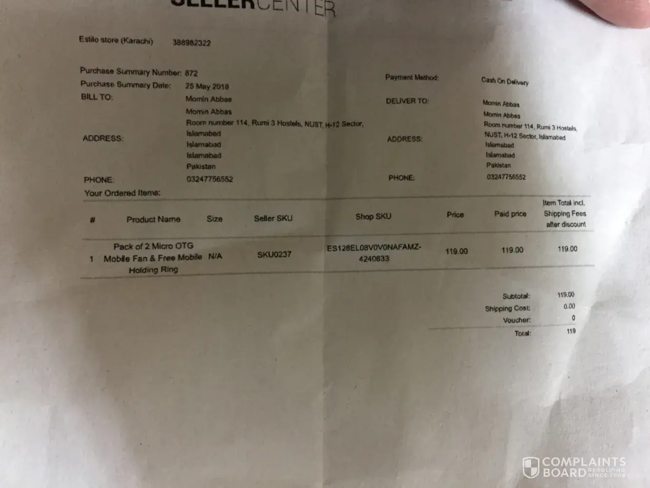 complaints against my order [protected]