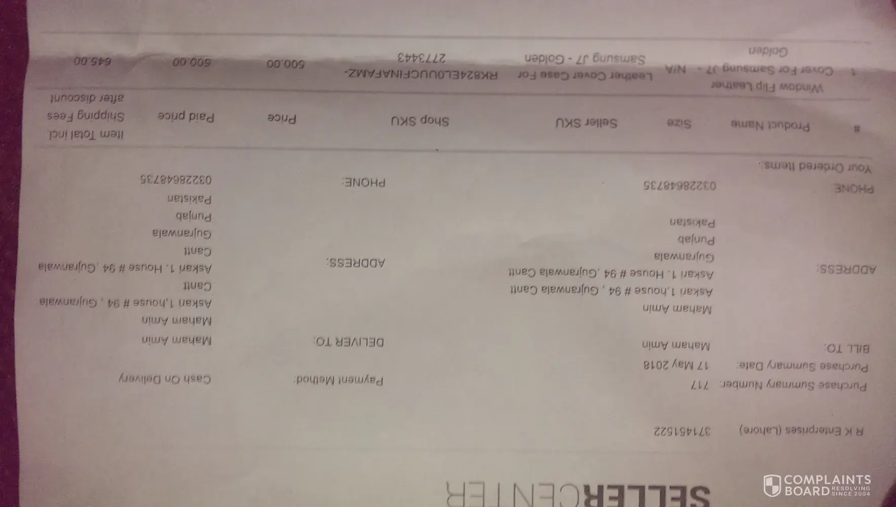 It's Maham Amin, I've ordered a phone cover from daraz.pk, I ordered it last week, the phone cover was of Samsung j7 and the color was grey, but the one I've got is not fitting to my phone and is golden in color... So please I want to return it, it's an humble request from myself (Maham Amin) ([protected]@gmail.com) I've called your company no, they said they will return the payment (645rs with delivery charges)