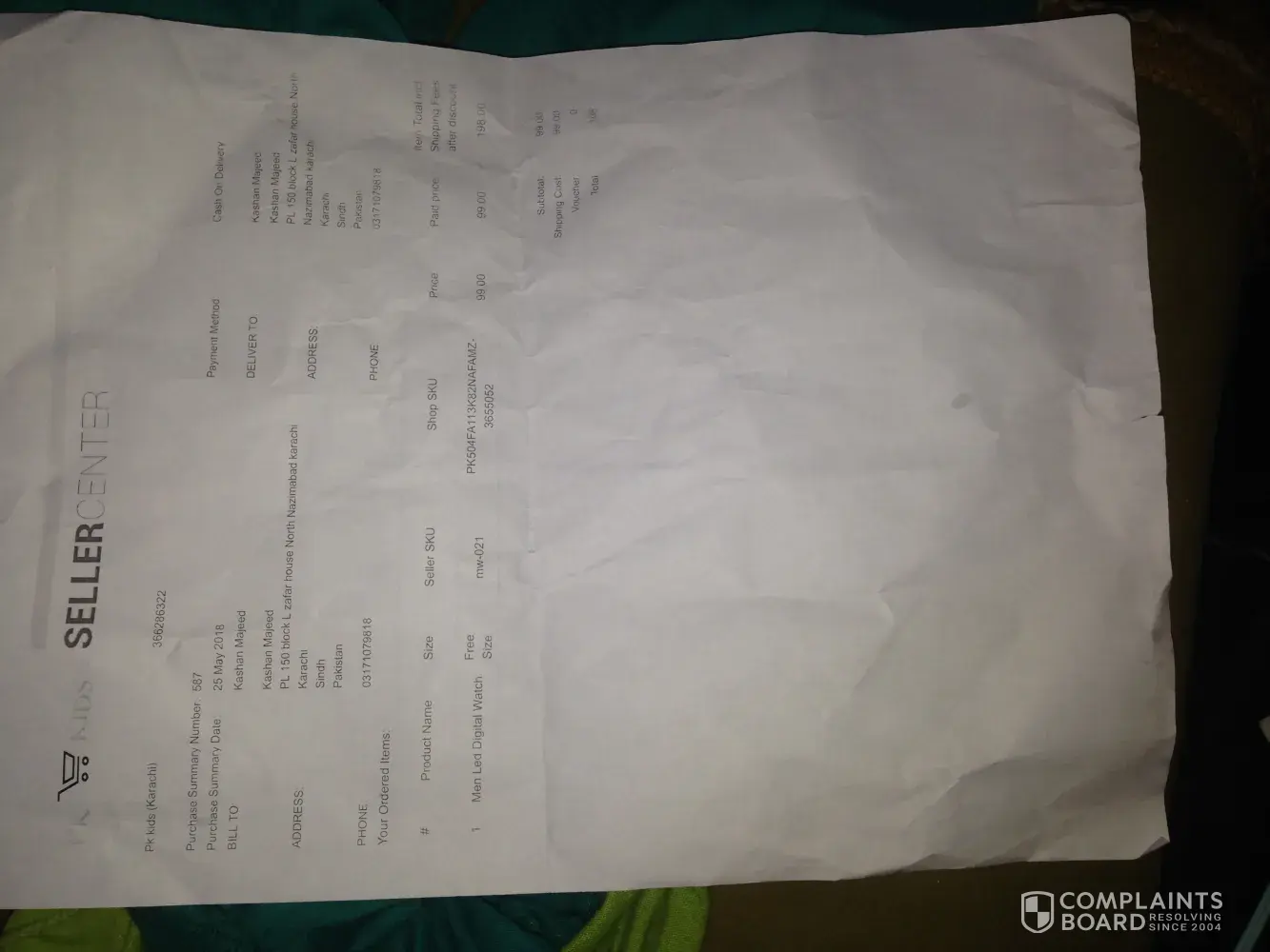 I ordered the above mentioned product and when it was delivered the watch were damaged . Name: Kashan majeed. Address: house no R-PL 150 north nazimabad block L karachi. I want to complain about daraz.pk that the product ordered from there are damaged, there is no hook to lock the watch so please kindly change my watch or return my money as soon as possible.