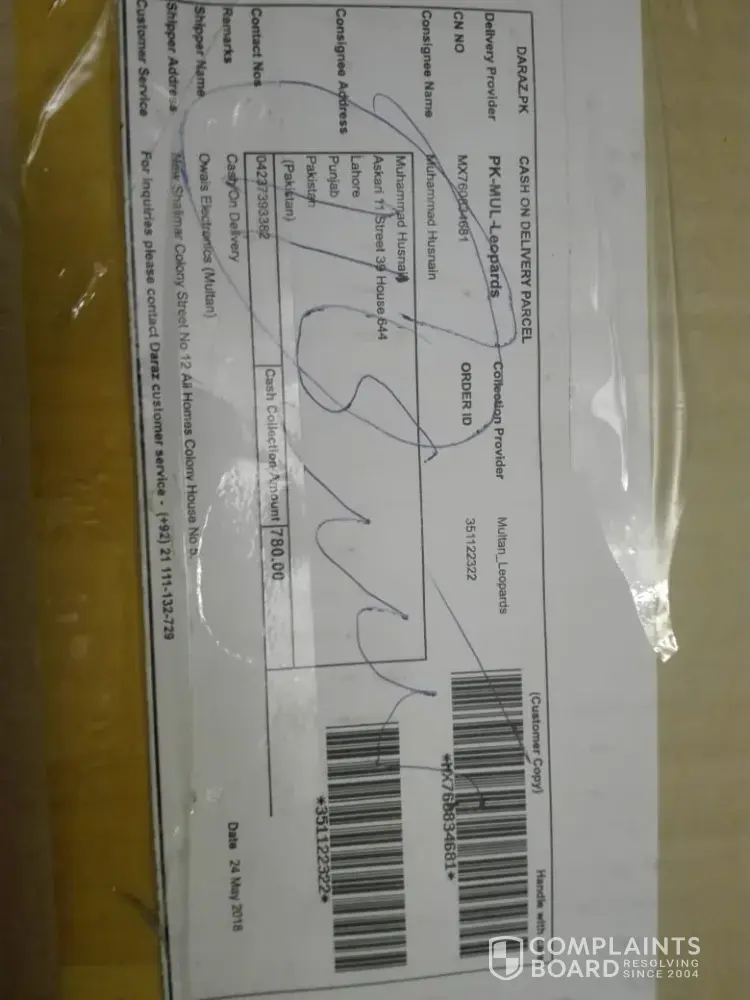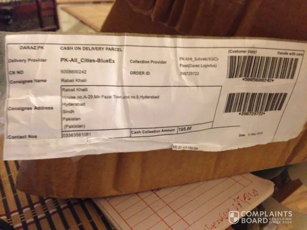 I want to complain about daraz.pk that the product ordered from there are damaged, the first pant it torn, second pant is sewed from inside as it was torn from outside and made to look like a design, the third pant is also sewed from inside because of being torn.