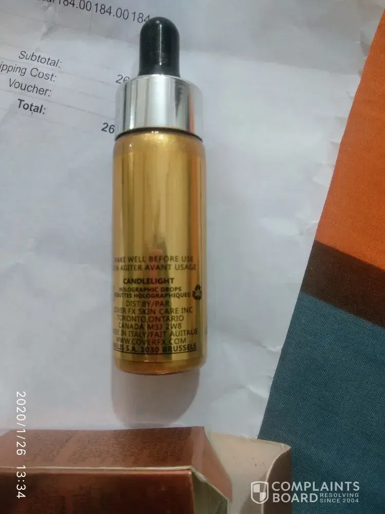 I ordered cover Fx drop liquid highlighter 15ml in celestial color but the seller provided me in candlelight color without informing me about this so that I can change or select any other option when I received parcel the details were given of the same color I ordered when it was opened there was a different product. Seller should send celestial