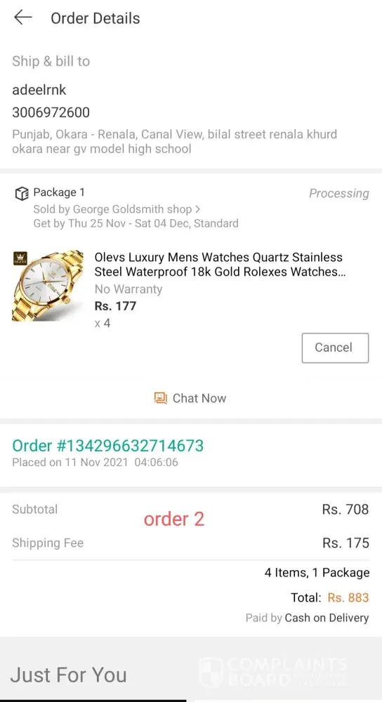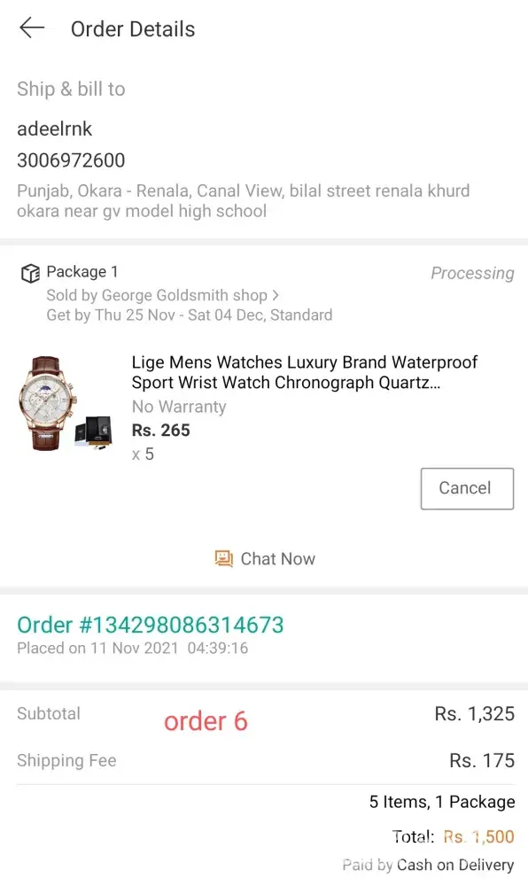 Fallow my talk I buy all items on draz sale after I confirm 5 times about my 55 to 60 watches order draz confirm me my orders with shiped status with shipping numbers I am adwance bookin some people after confirmation they all people asked about watches deal I am in center truble my lose pay draz why cancelled dont accept any person after 14 days there is all juniors on chat help I want talk senior person