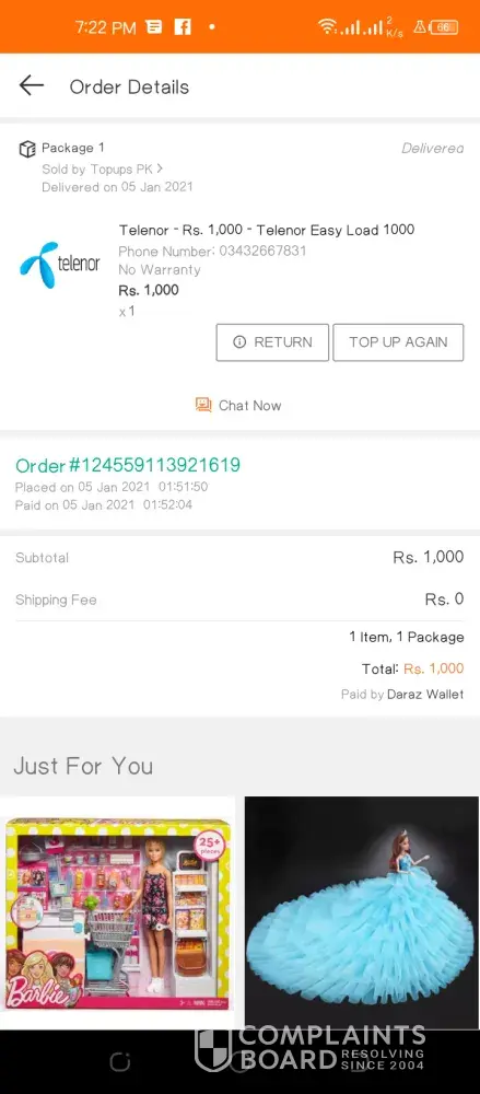 I topup mobile with daraz wallet yesterday but still I didn't get it