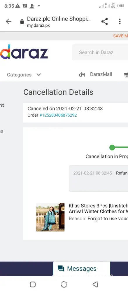 Dear sir i order grocery for coming ramdan on 17 march 2021 but after two days i recive a call from karachi they said that your order is being cancel i attached a picture also they said we have clearly mentiond that your order is below the given amount kindly in voucher there is not any mentioned on voucher what if daraz doing such a cheap way which is not bearalble