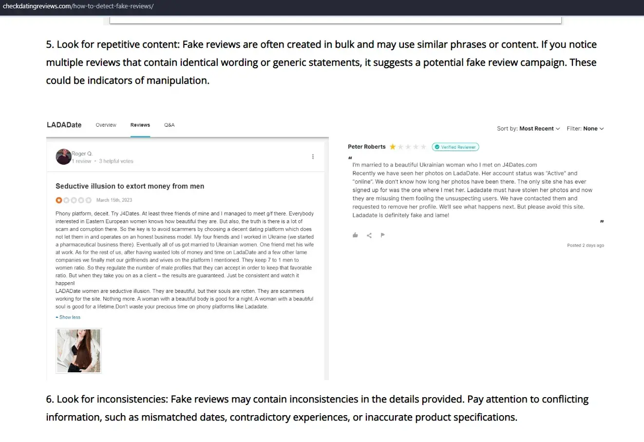 I am writing to express my deep satisfaction with the recent review of website https://onlinedatingdetective.com/ that was published on your site https://checkdatingreviews.com. As a user of your platform, I believe the review is fair but also misleading to potential users who rely on such information to make informed decisions. However, the review in...