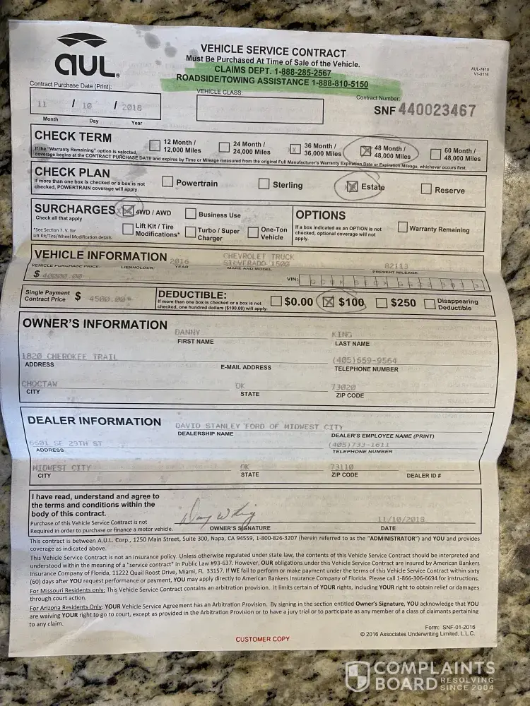 I purchased a 2016 Chevrolet 1500 from David Stanley Ford Midwest city, in 2018. The first thing that happened was they tried to over charge us $8000, I had the price of the Truck and the agreement for our trade. They said this is the price, I said no and we will not be buying anything from this facility. They agreed to correct the purchase price. We agreed to purchase a extend warranty, which was 4, 500. This wasn't the problem, this truck has been in the shop multiple times, the last time was Aug 2021. The transmission needed to be replaced, which again we were turned down by the warranty company. Come to find out your facility didn't check the box with the lift and modify tires and wheels. So I guess we got it stuck to us in the end. We had to paid David Stanley $4650 today… it's not good business if you ask me. I'm angry and very upset that we had to pay for something this company didn't complete correctly. We did our part. I'm sorry but moving forward We will not purchase vehicles from David Stanley, you couldn't or wouldn't even make it right… as I said before we got struck in the end.