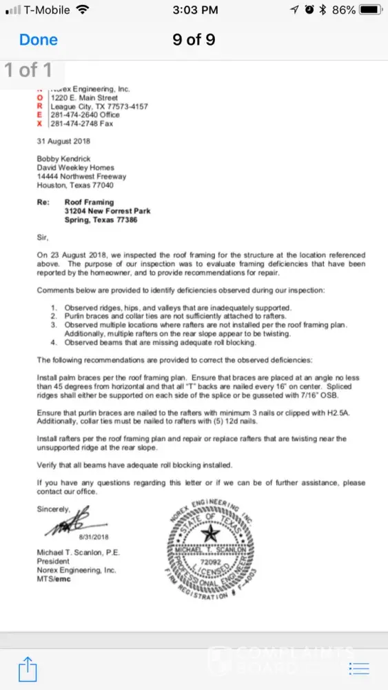 We understand that you will not do anything to address any of these concerns. What we want you to understand is that we will tell any single person who will listen what an incredibly poor job you did on the building and overseeing of the building of our home. We will use every available means of social media, spread the word to our family and friends who we will ask to spread the word to their families and friends, and make sure our neighbors do the same. We do not want any other individual, couple or family to pay their hard-earned dollars for a home that does not keep them safe and is falling down around them. So, we will tell anyone we meet, anywhere we meet them, in this community or other communities, this region or other regions, this state or other states, that David Weekley is a terrible homebuilder and they would be better off with, likely, any other company.