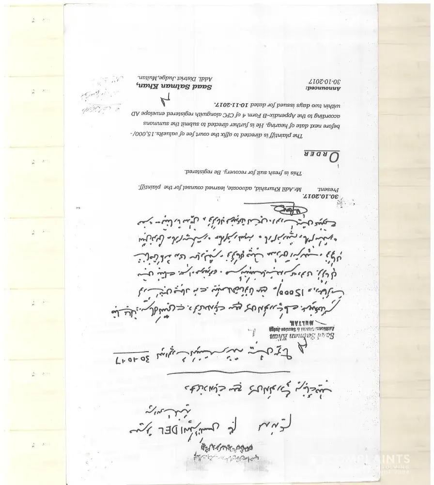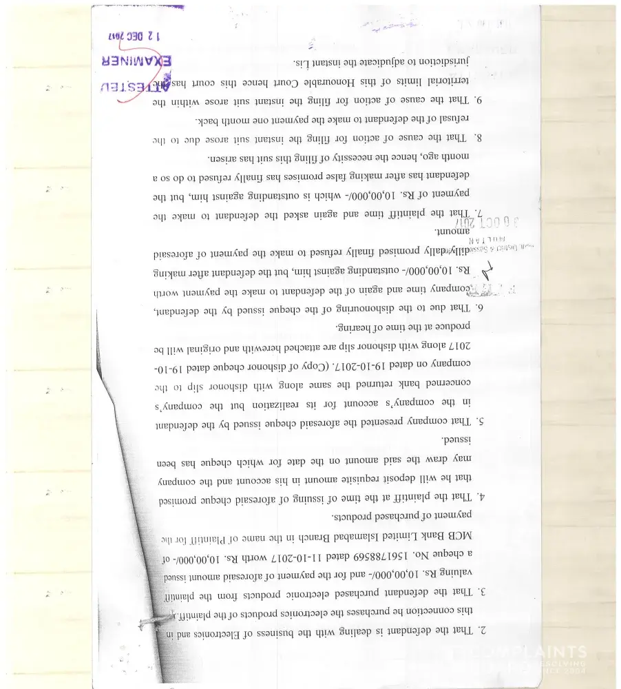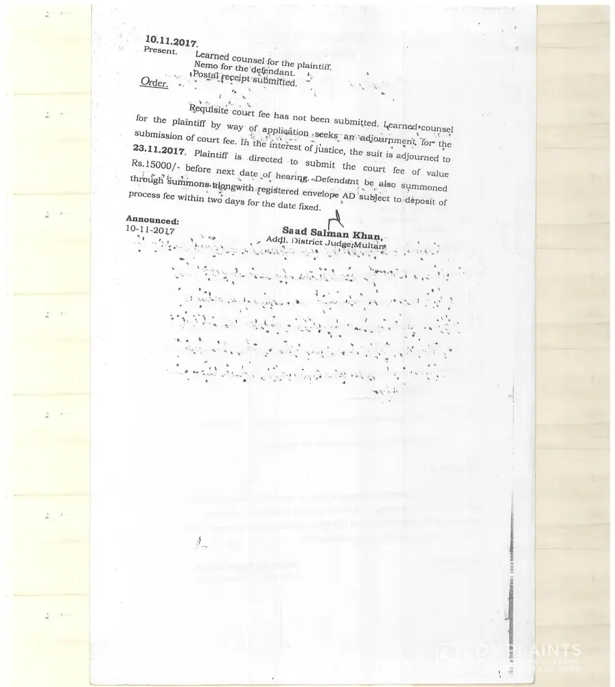 Due to negative behavior of Mr. Zaheer, Zonal Sales Manager, a civil suit titled RENDITION OF ACCOUNTS, CANCELLATION OF CHEUQES AND PERMANENT INJUNTION before the honorable court of Mr. Muhammad Shoaib Akhter Civil Judge 1st Class (West) Islamabad.