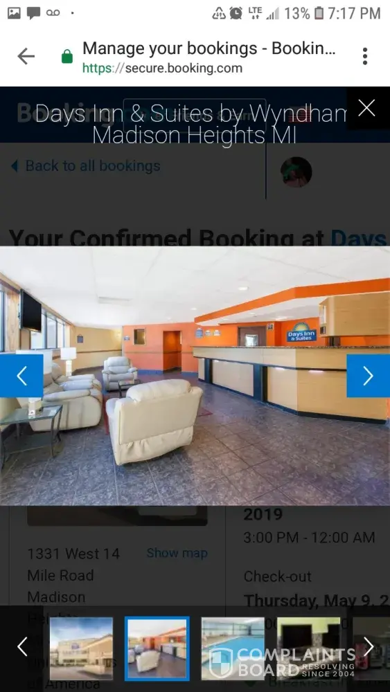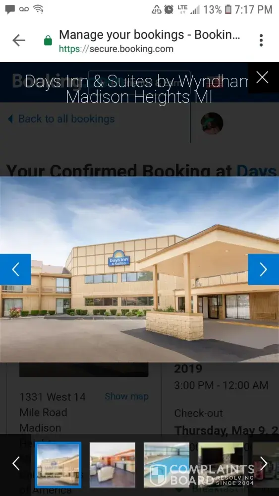 I booked a room on booking.com. I confirmed with the facility via email. Upon arriving I was greeted with potholes in the driveway and the parking lot, an old repainted building, people loitering in along the building, old drapes, discolored windows and even larger potholes. I cancelled the reservation and a pop-up said that I may still be charged for the...