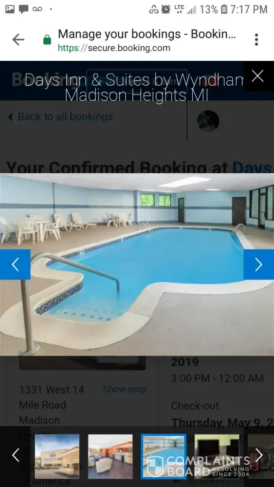 Conf # 83191ec010625 itinerary [protected] I did bok as a guest this time. Our stay in this motel was very disappointing. From the dirty green pool, broken hair dryer, non working refrigerator, hanging light fixture in bathroom. Crumbling ceiling, raggy blanket, one working plug by sink, dimly lit hallway, children in pool yelling at 6:27 am... Our room...