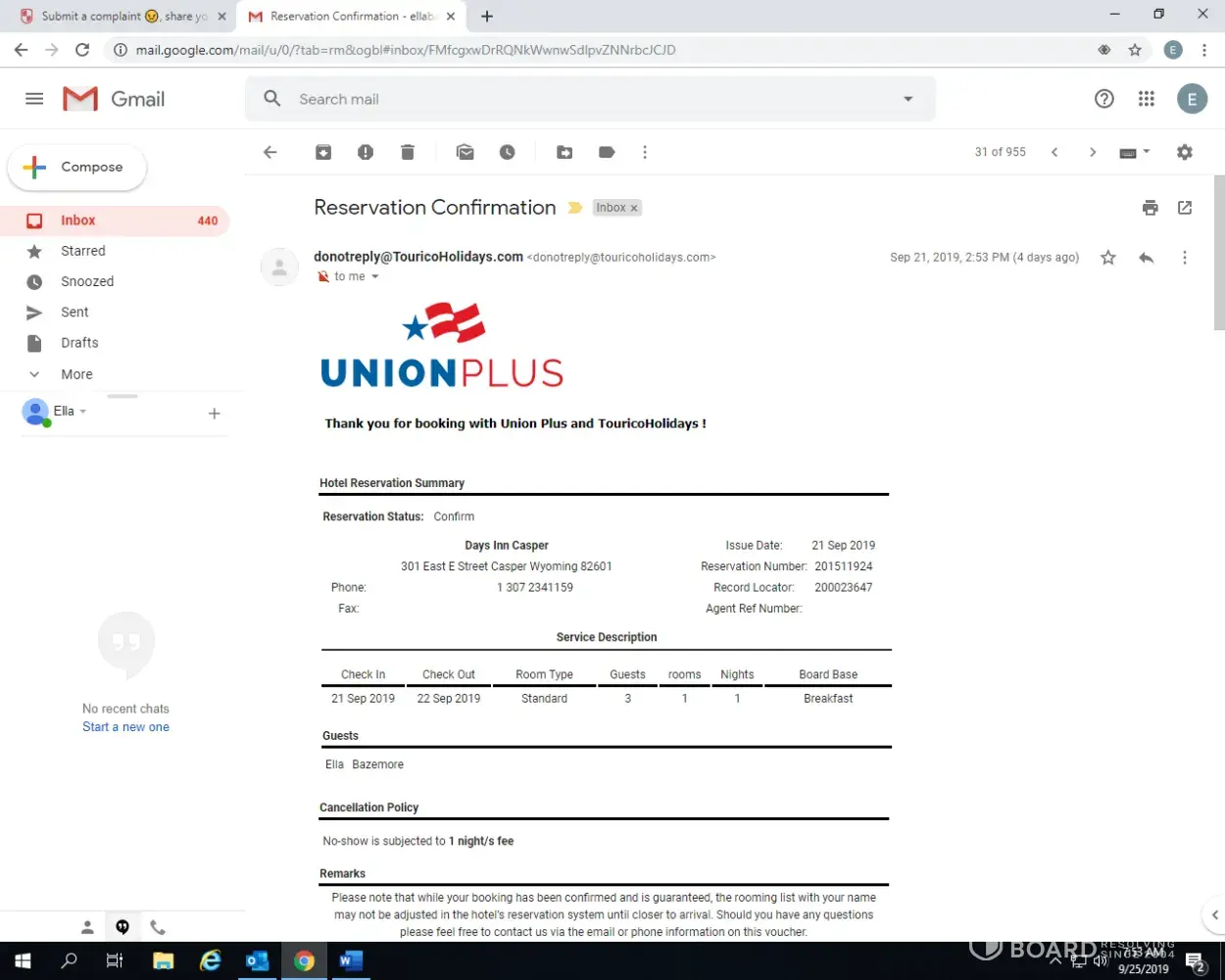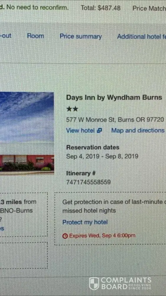 Read full complainthotel