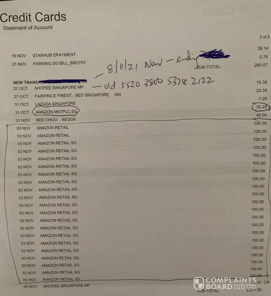 My sub card holder called DBS hotline and agreed to cancel the card on 4/11 and got a replacement on 7/11. Dbs said they will investigate further. I haven't got my statement yet then.