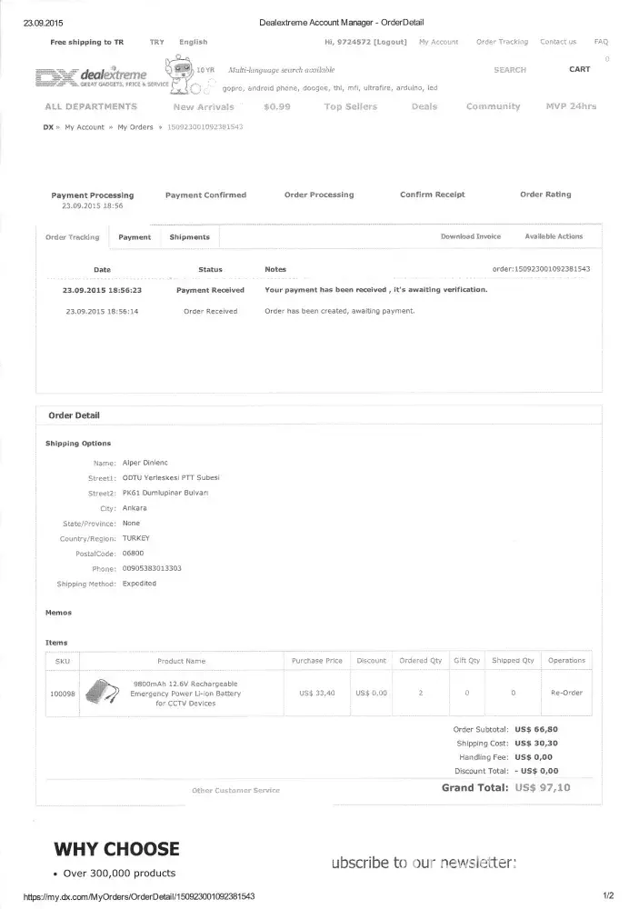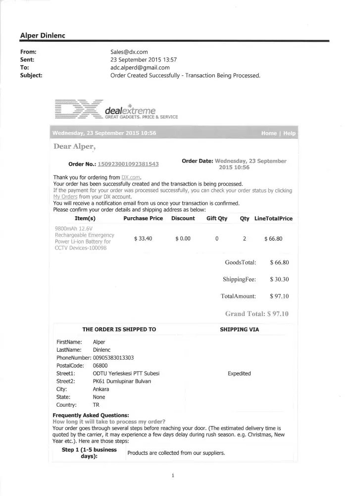 Hi, I gave an order to this company on 23rd of September, amounting 97.10$, where 30.30$ of this amount was for expedited shipment. At the very beginning the order no was as indicated above, with a tracking no: EA115692739CN. I have been informed that my parcel shipped on the 30th of September. I could not trace my shipment, then they said "sorry your order is not well processed by the shipper", and they gave me a new order no as [protected] and new tracking no that is EE689852082CN . I have been tracking this number since 27th of October but still this shipment is UNTRACEABLE! The products I ordered were some urgent materials for one of our projects and we have really in trouble with our customers. The full history is included in the attached pages. ı want to know where is my parcel, and what is wrong with this company could not been able to ship a tiny little order to me since 40 days although I paid for expedited shipment. Please reply to me asap. Alper