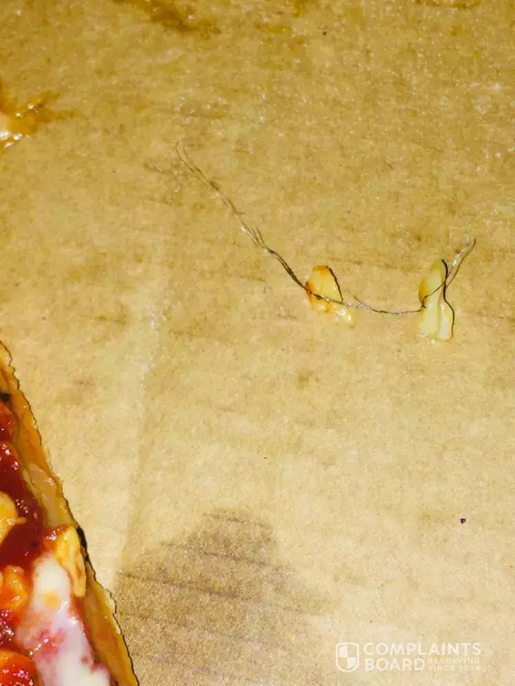 My wife ordered a pizza and the pizza had a wire inside it. The wire looks like a wire from a wire brush.