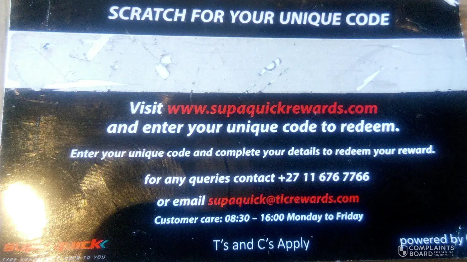 I have a competition voucher redeeming complaint. Please contact me asap on [protected]. I have 3 scratch cards voucher redeem cards from supaquick. I sent the mail on the 23rd December 2019. No response. Deboinars cashier desk comaro has no kknowledgeowledge of the supaquickscratch card deboinars 100 voucher purchase. Please explain to me that this competition is very disappointed & I need answer's & my guaranteed voucher