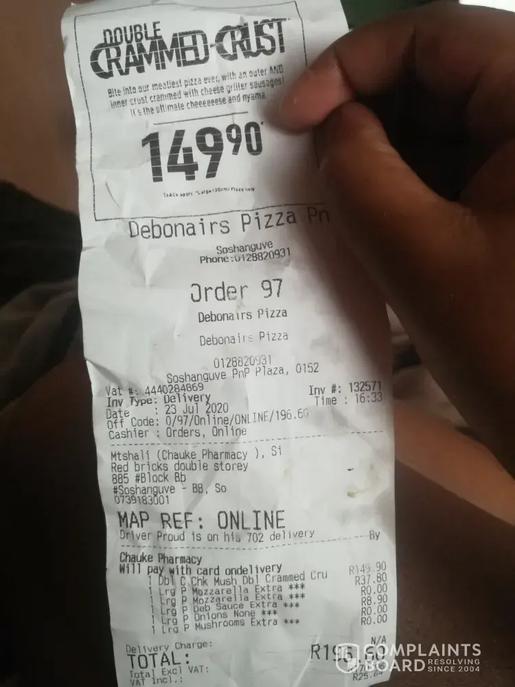 Most discussed Debonairs Pizza complaints