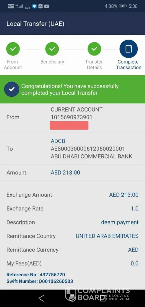 I have applied for easy pay in deem credit card and I am facing one of the worst banking service in the entire UAE. Customer care people are not sure about the status and they will give false commitments every time. Amount is deducted from my deem credit card on 30th December and still it is not credited to my account. When I check with customer care they are saying its already transferred from our end you please check with your recipient bank. My recipient bank is asking for swift copy for the confirmation. When I asked for swift copy they said they need half an hour time. Its been 1 and half day now, still they didn't provide swift copy and agent is not picking my call.