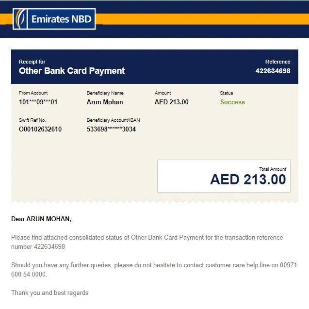 And after some times, the Deem finance claimed an amount of AED 498,349 in the same card number which they charged before. But actually, I did not receive the card and I have only the card I mentioned in subject.