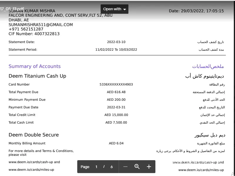 I am having a deem credit card . And I was informed by the sales executive that it is free for life. but I after one year I was charged with the annual charges of 213 Dhs. And i paid that amount from my ENBD account before the due date. And few days after i got a call saying that the payment got rejected because i paid through ENBD Online banking. And when i spoke to ENBD customer service they said it is under process. After a months time i got the refund from ENBD and the due amount got doubled. I called the DEEM customer service regarding this and they asked me to send them the details of the payment such as receipt of the payment and screenshots. I send the all the required details many time s, weeks passed nothing was resolved and I didn't receive any communication from them. Again I am charged due amount. 2 days ago after waiting for about 50mins on call i spoke to this guy from deem collections. As he adviced i payed the amount again to Deem's ADCB account. What he said was 'Once this payment is done we will waive off the balance amount as the documents that i submitted is legit and im eligible for it. And said he will monitor my payment and get back to me afterwards. Till now there is no response or reply as my payment was successful. And i got this months statement last day saying that my due amount is AED 900.