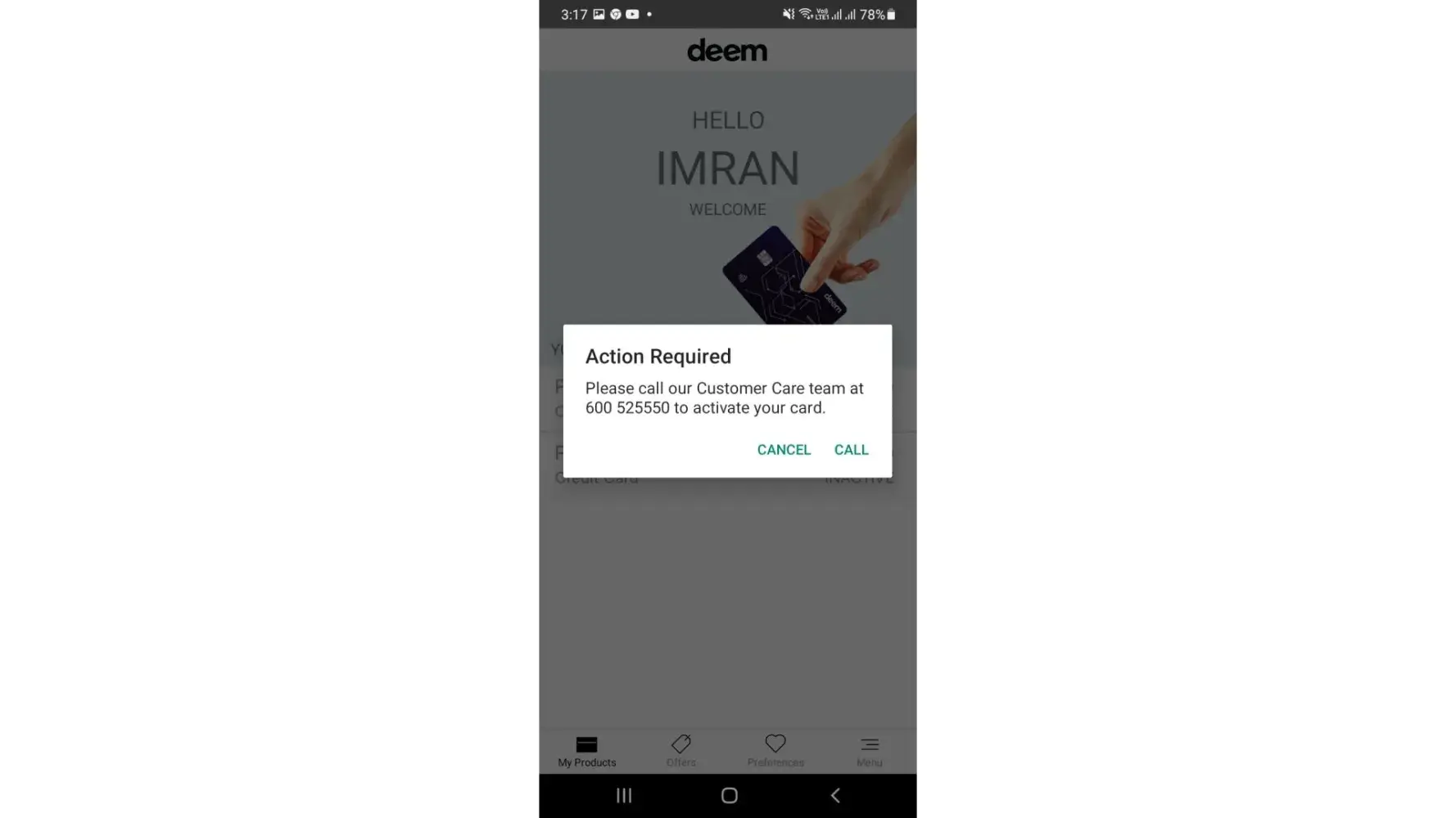 Deem management,,you have very bad customer service ..i had raised a request and I was been told someone will call me in 2 to 3 days,,noone called. I reminded customer service on 3rd day and the assured me someone will call me soon..today is the 2nd day again noone called..even the agent who sold credit card he also tried to request internally but noone called. This is very bad,if i will not get call by today i will enter bad reviews of Deem on social media platform,,my reference number is [protected]