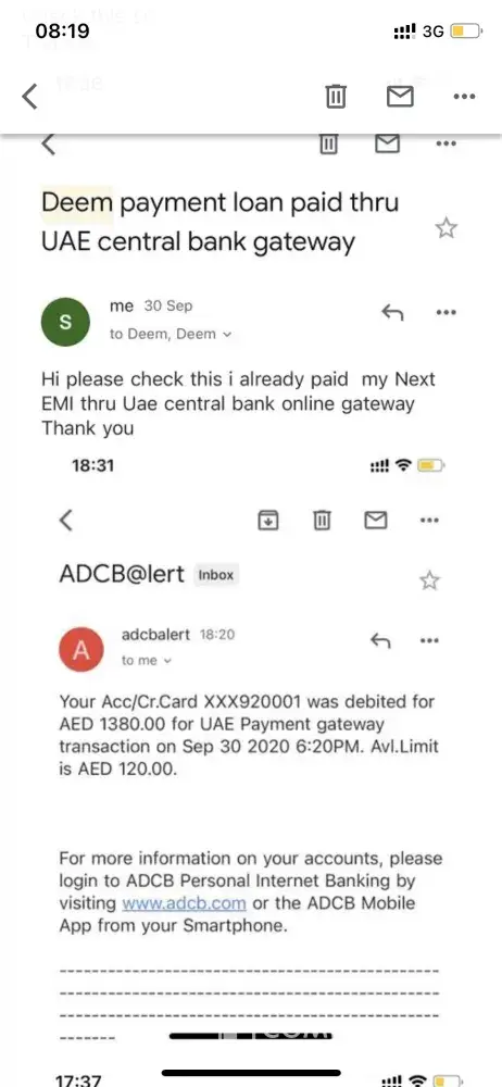 I have deem credit and I paid all outstandings in September 2020 before leaving UAE but the application is not updating and there was something pending that I paid recently before due date and shared the receipt also to deem customer care but they have not updated and your collection manager has sent me threatening mail to share my details to immigration as defaulter but I have already paid all my dues and the fault lies with deem for not crediting and clearing the issue.I am presently outside UAE and can't return .My registered mobile number was [protected] . Kindly look into the matter and sort it out .Thank you