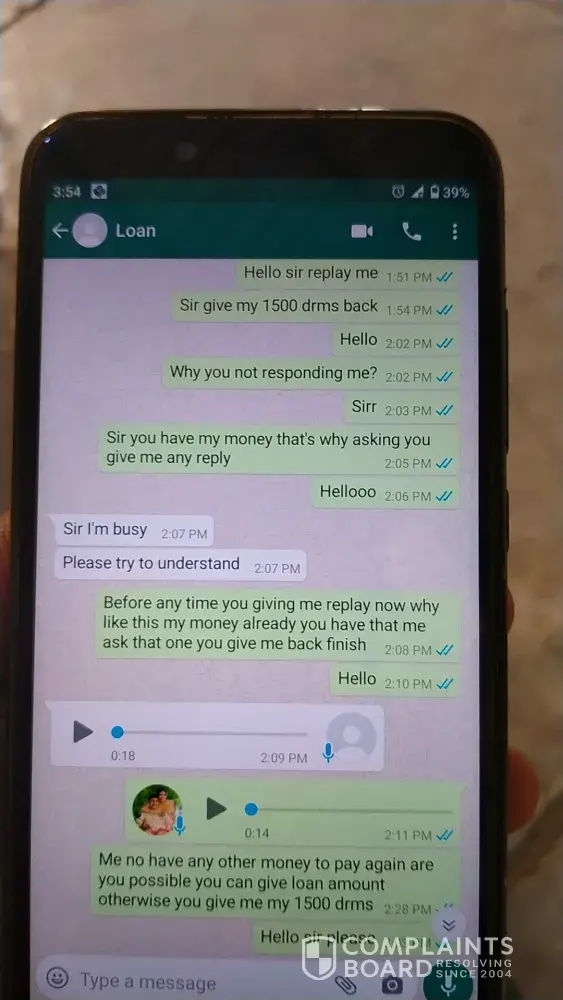 I made a complaint through the phone and of course non sense the guy i was talking to as if am borrowing money from him!